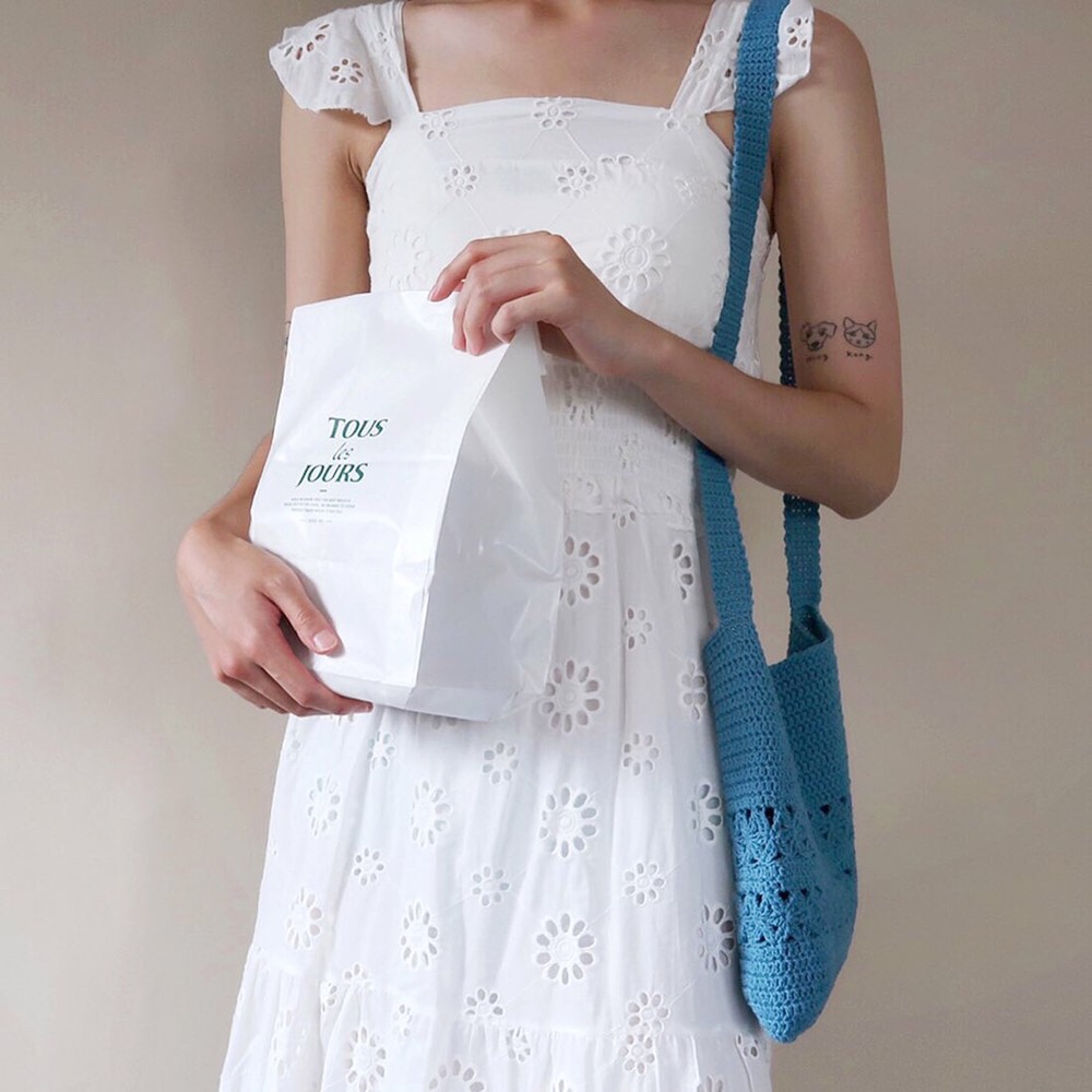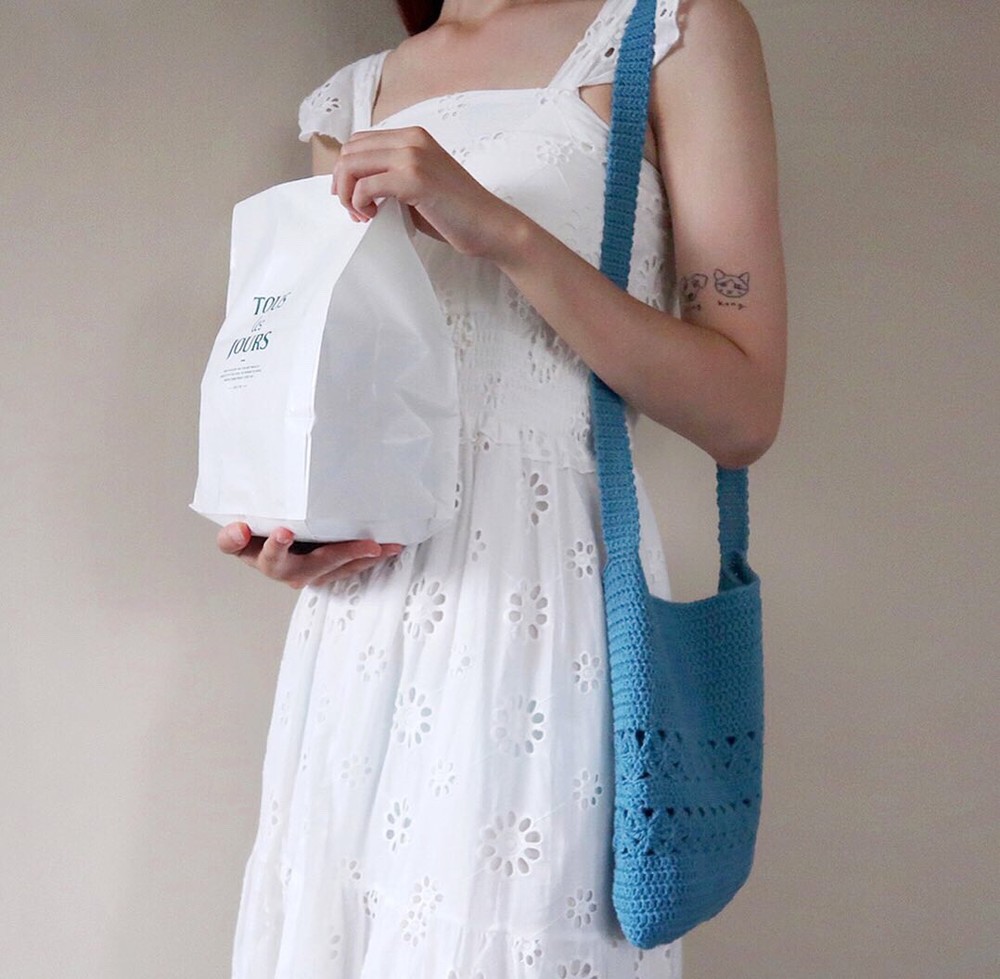 이번 뜨개가방의 스트랩은 자연스럽게 당겨지기 때문에 억지로 늘리지마세요.